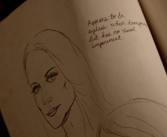 When they woge, unlike many other Wesen, Hexenbiests still appear human; however, their skin decays so that it resembles a corpse, their teeth sharpen, and their hair may turn gray. Their woged appearance becomes more decrepit-looking as they age. Interestingly, Hexenbiests find this decayed look sexy. When a Zauberbiest woges, their skin appears more aged and wrinkled than their female counterparts, and their eyes entirely turn a glowing red, almost as if they are hot embers.