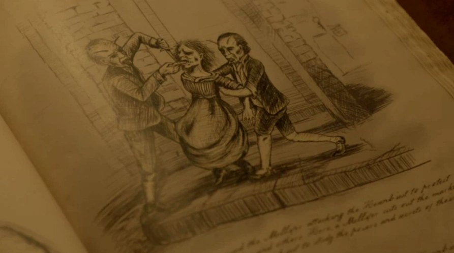 Here, a Mellifer cuts out the marked tongue of the Hexenbiest to study the powers and secrets of their kind.